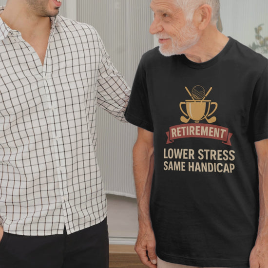 Celebrate the joy of leaving work behind with this bold and witty “Retirement – Lower Stress, Same Handicap” T-shirt. Designed for those who have traded deadlines for downtime, this tee captures the humor, pride, and freedom that retirement brings. Whether you’re gifting it to someone embarking on a new chapter or treating yourself to a well-deserved laugh, this is easily one of the most memorable golf gifts you can give to commemorate a milestone that deserves to be celebrated.